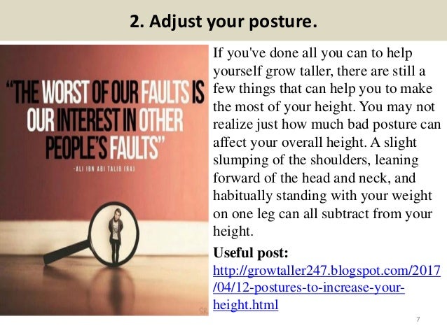 Is it possible to grow taller after puberty? Go through steps 3 to 5 in their respective order, two more times. Discover how to grow taller naturally and safely, without surgery or drugs. Please let me know because i want more. People constantly call me short for fun and i just laugh it off.